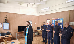 17 сентября в день празднования иконы Божией Матери "Неопалимая Купина" настоятель Петропавловского храма священник Алексий посетил пожарно-спасательную часть № 223 в селе Новопетровское -