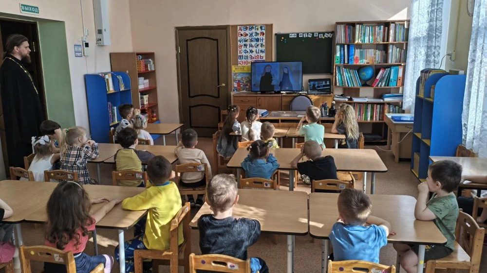 Батюшка поговорил с ребятами о грядущем празднике Благовещения Пресвятой Богородицы, как явился Пресвятой Деве Марии архангел Гавриил и она со смирение и покорностью приняла эту весть. Малыши с интересом слушали батюшку и задавали вопросы. В конце встречи все посмотрели мультфильм Свято-Елизаветинского монастыря «Благовещение».
