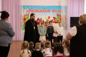 16 апреля Детско-юношеский хор храма во главе с настоятелем священником Алексием посетили детские садики села с радостной вестью о Воскресшем Христе. Батюшка поздравил всех с праздником, а ребята пропели пасхальные песнопения и раздали малышам подарки. Воспитанники детских садиков прочитали гостям пасхальные стихотворения