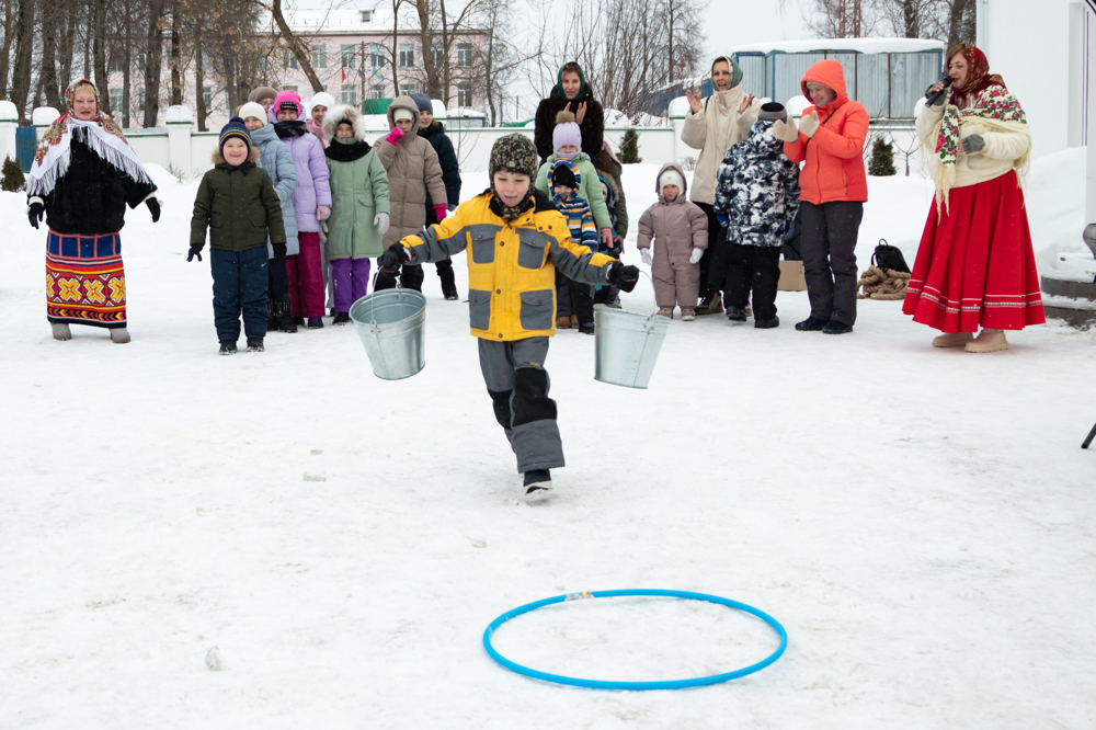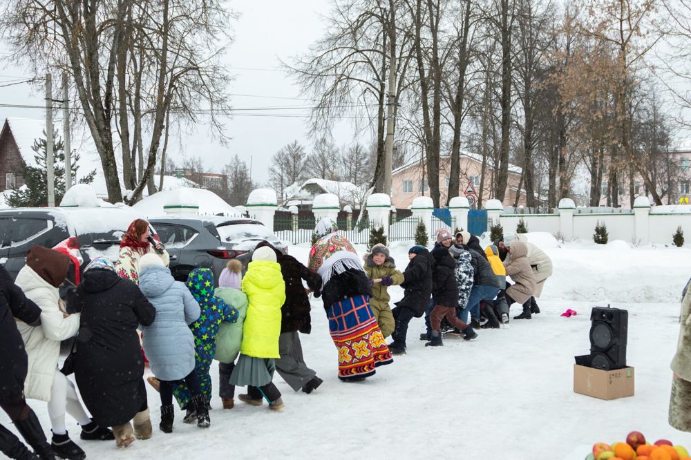 По окончании урока праздник продолжился во дворе храма. Для учеников школы и гостей были организованы различные игры, катание на лошадках и, конечно, угощение блинами с ароматным чаем из самовара, которое завершилось конкурсом «Самый вкусный блин» и вручением подарков победителям.