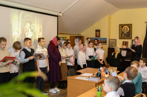 По традиции праздничное мероприятие началось с «пищи духовной» - открытого урока, посвящённого Сретению Господню. Ребята молодёжного движения подготовили презентацию, повествующую о Евангельском событии, ученики Воскресной школы прочитали стихи, исполнили духовный кант, а Детско-юношеский хор пропел главные песнопения праздника: тропарь и «Ныне отпущаеши».